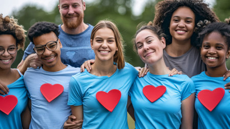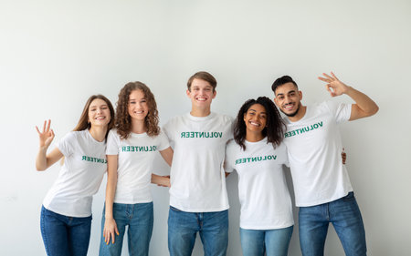 Diverse Group of Young Volunteers Posing and Showing Their Support for Charity Work