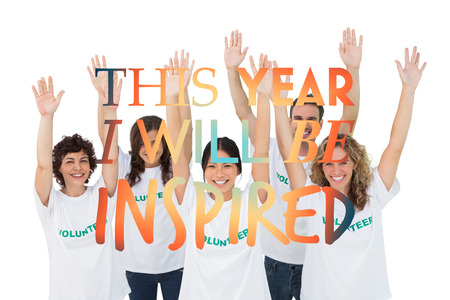 Group of volunteers raising arms against i will be inspired