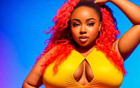 Digital painting attractive black plus size woman, people, diversity