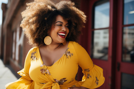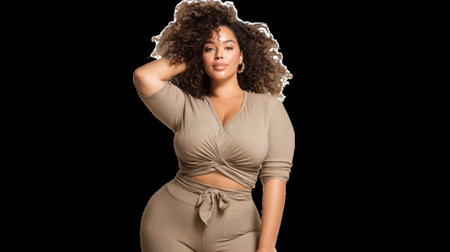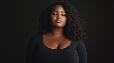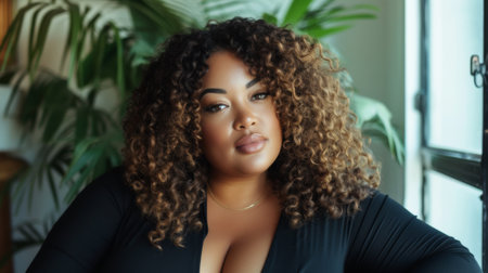 Stunning portrait of a confident, young plus-size African American model in a stylish setting.