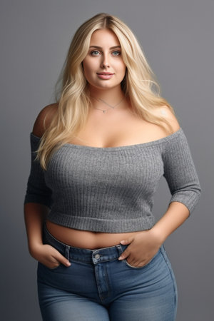Portrait of a sensual and curvy woman with large breasts