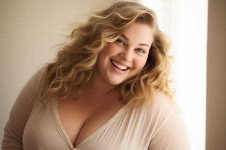 beautiful and sensual white fat model smiling. chubby