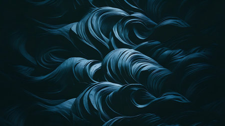 An artistic rendering of flowing blue shapes against a dark background, creating a sense of movement and depth.