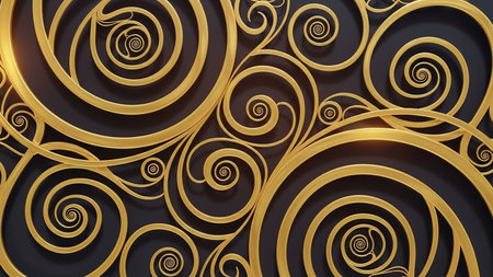 Ornate pattern with shiny metal surface decoration decorative golden design. Spirals texture.