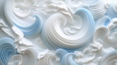 Intricate swirls and curves in shades of blue and white form an abstract design that mimics the gentle movement of ocean waves. The flowing patterns suggest tranquility and depth.