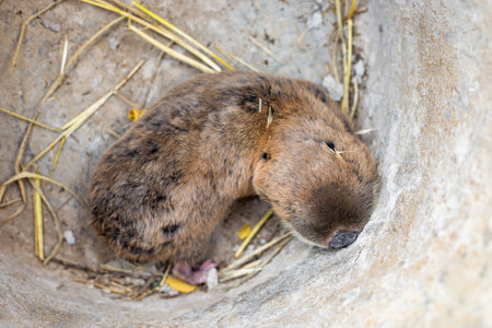 Animal rodent common mole rat caught in a bucket. Pest of agricultural crops in a garden plot.