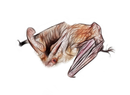 Drawing of bat with huge ears. Brown long-eared bat. Ears as locators, leathery wings, clawed feet
