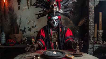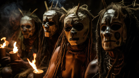 Voodoo shaman dark. Tribal effect. fictional person. Generate AI