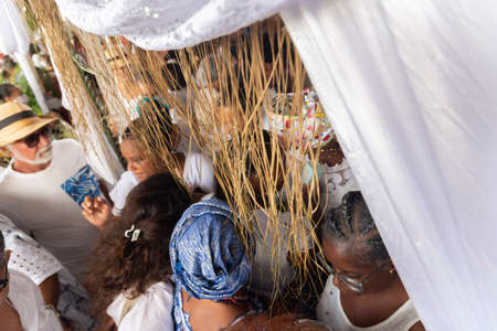 Santo Amaro, Bahia, Brazil - May 15, 2022: Members of the Candomble religion are seen during a religious celebration in a terreiro in the city of Santo Amaro da Purificação in Bahia, Brazil.