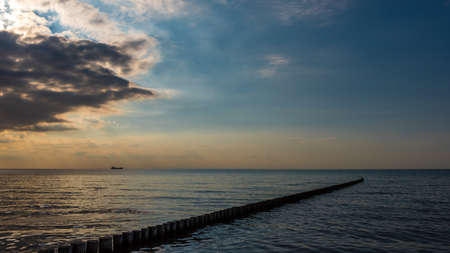 Breakwaters in the Baltic sea over the sunset in summer