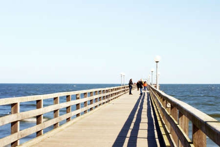 Zelenogradsk, Russia-may 17, 2016: Seascape overlooking the long pier of the resort town with walking people.