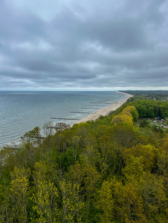 View of the area from the Niechorze Lighthouse on the Baltic Sea in Poland.