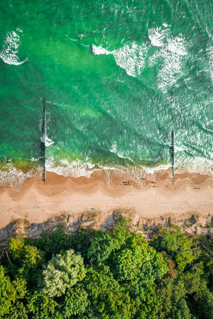 Wonderful blue waves on Batlic sea. Tourism at the Sea. Aerial view of sea in Poland, Europe