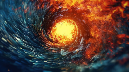 A stunning swirl of blue and orange hues forms a captivating vortex, evoking the dynamic beauty of cosmic elements and otherworldly landscapes in an endless spiral.