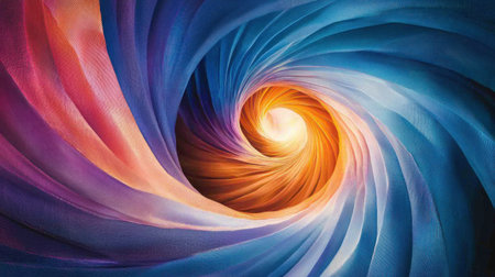 A colorful abstract image of a spiral with orange and blue colors, AI