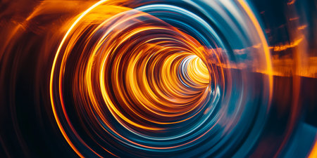 A stunning swirl of blue and orange hues forms a captivating vortex, evoking the dynamic beauty of cosmic elements and otherworldly landscapes in an endless spiral.