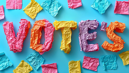 Vote word written with different colored letter blocks arranged on a dark background