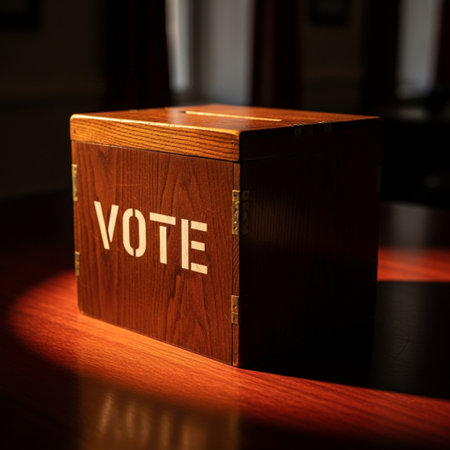 Wooden box with the word vote on it in a dark room