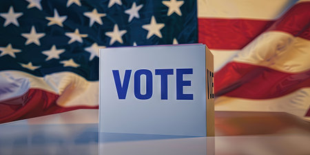 Vote on the ballot box on the background of the American flag. 3D rendering