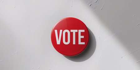 AI Generated. Red vote button promoting civic duty and participation in elections