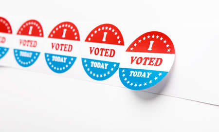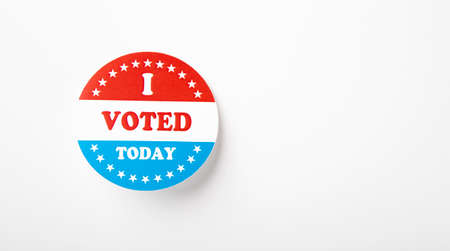 Vote Buttons Badge Isolated on White Background, 2020 US elections, panorama, copy space