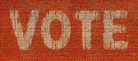 Word Vote on red brick wall background