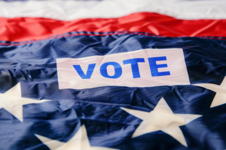 Shining vote text over blurred usa flag background with copy space for text placement