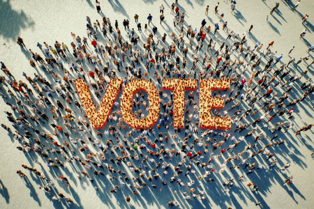 Large group of people forming word VOTE, aerial view. Concept of elections and voting day