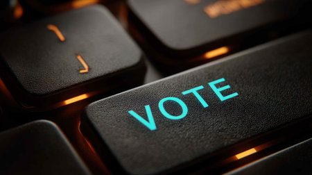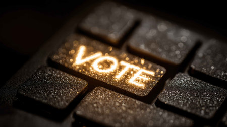 A detailed close-up image of a computer keyboard key showcasing the word Vote illuminated in bright blue, symbolizing civic engagement and digital democracy.