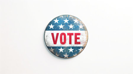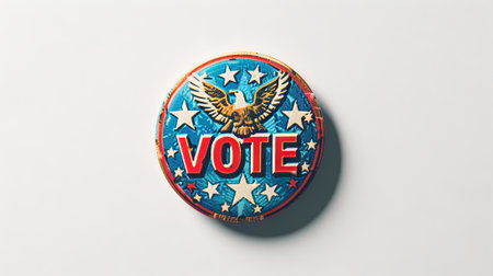 Patriotic round Vote badge with eagle and stars on a textured background. Isolated on white backdrop. Concept of American democracy, national symbols, elections, and patriotism.