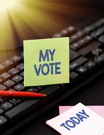 Conceptual caption My Vote. Conceptual photo the act of showing your choice or opinion in an election or meeting Copying Old Ideas And Creating New Ones, Transferring Written Notes