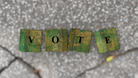 Hand arrange wood letters as Vote word
