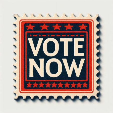 VOTE NOW stamp printed in shows image of a stamp.