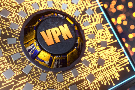 VPN concept illustration. the concept of a secure internet connection. Abstract electrical circuit. Secure VPN. 3D rendering.