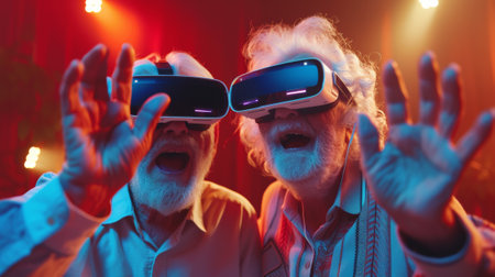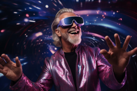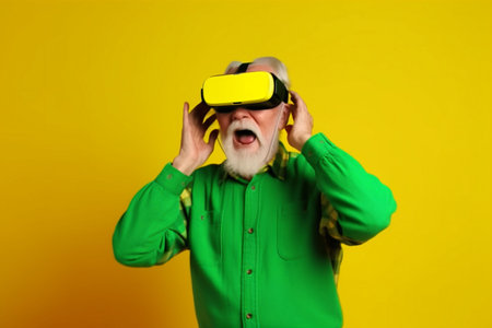 man male virtual old technology mature goggles innovation reality elderly game. Generative AI.