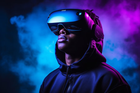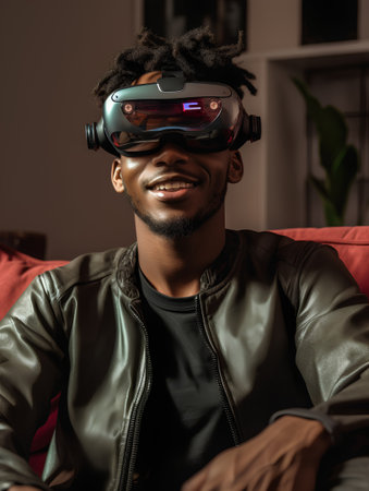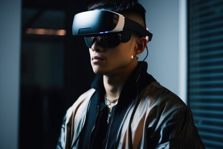 a futuristic man wearing a pair of virtual reality glasses, created with generative ai