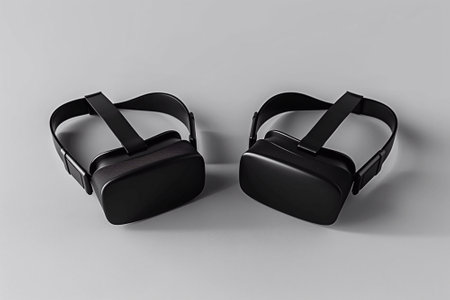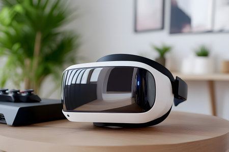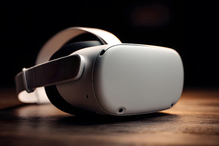VR headset on a table. A gateway to virtual worlds, the VR headset rests on the table, ready for adventure.