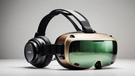 Futuristic headset with optical lens for virtual reality simulation generated by artificial intelligence