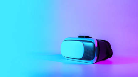 VR goggles. Metaverse. Future game and entertainment digital technology. VR virtual reality glasses on dark background. neon light. Generative AI
