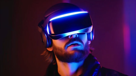 virtual man 3d science cyber technology young vr modern gamer background glow. Generative AI.