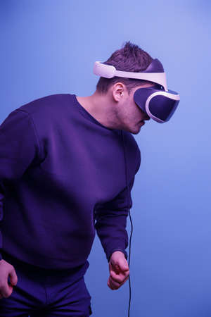 Man in VR glasses exploring cyberspace