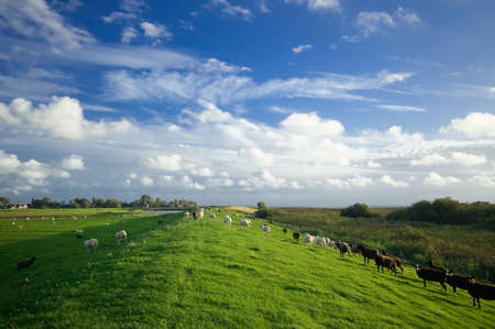 cloud sky over river in Dutch farmland, Groningen, Netherlands