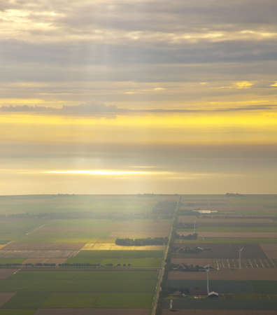 Aerial view and green nature landscape of province Zeeland, Netherlands,
