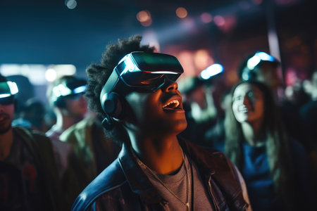 VR Enthusiast Enjoying Rock Concert with Friends