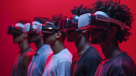 People experiencing immersive virtual reality in digital world