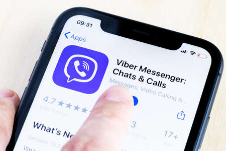 Voice and Video Calling application icon on Apple iPhone X screen close-up. Voice and Video Calling app icon.