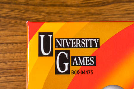 LONDON, UK - JANUARY 13TH 2017: The logo of University Games on one of the packaging of one of their board games, on 13th January 2017. The company were founded in 1985 and are based in California.