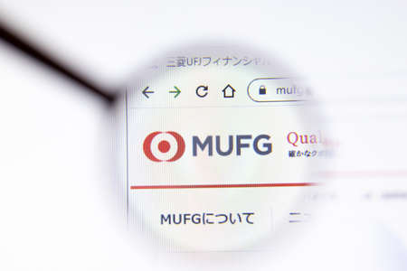 Los Angeles, California, USA - 15 March 2020: Mitsubishi UFJ Financial Group MUFG icon on website page. Mufg.jp logo visible on display screen, Illustrative Editorial.