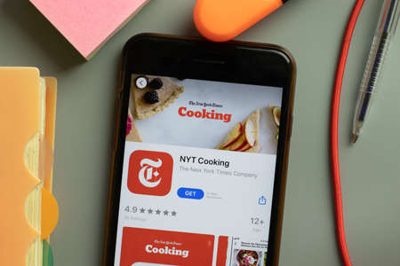 New York, USA - September 29, 2020: NYT Cooking mobile app logo on phone screen close up, Illustrative Editorial.