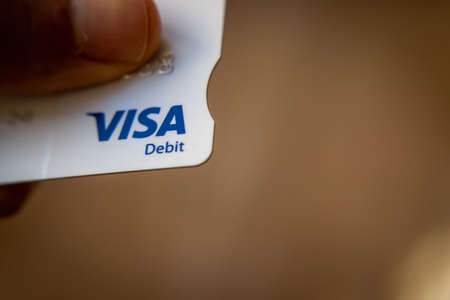Hong Kong - April 2020: Visa debit card close-up for cashless payment